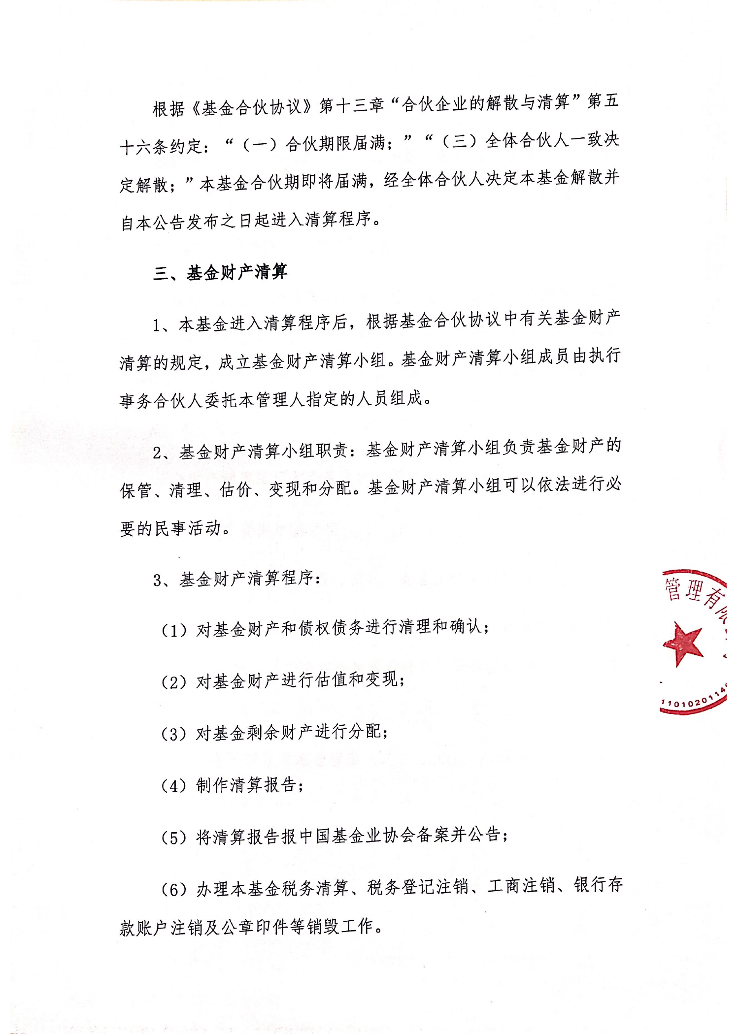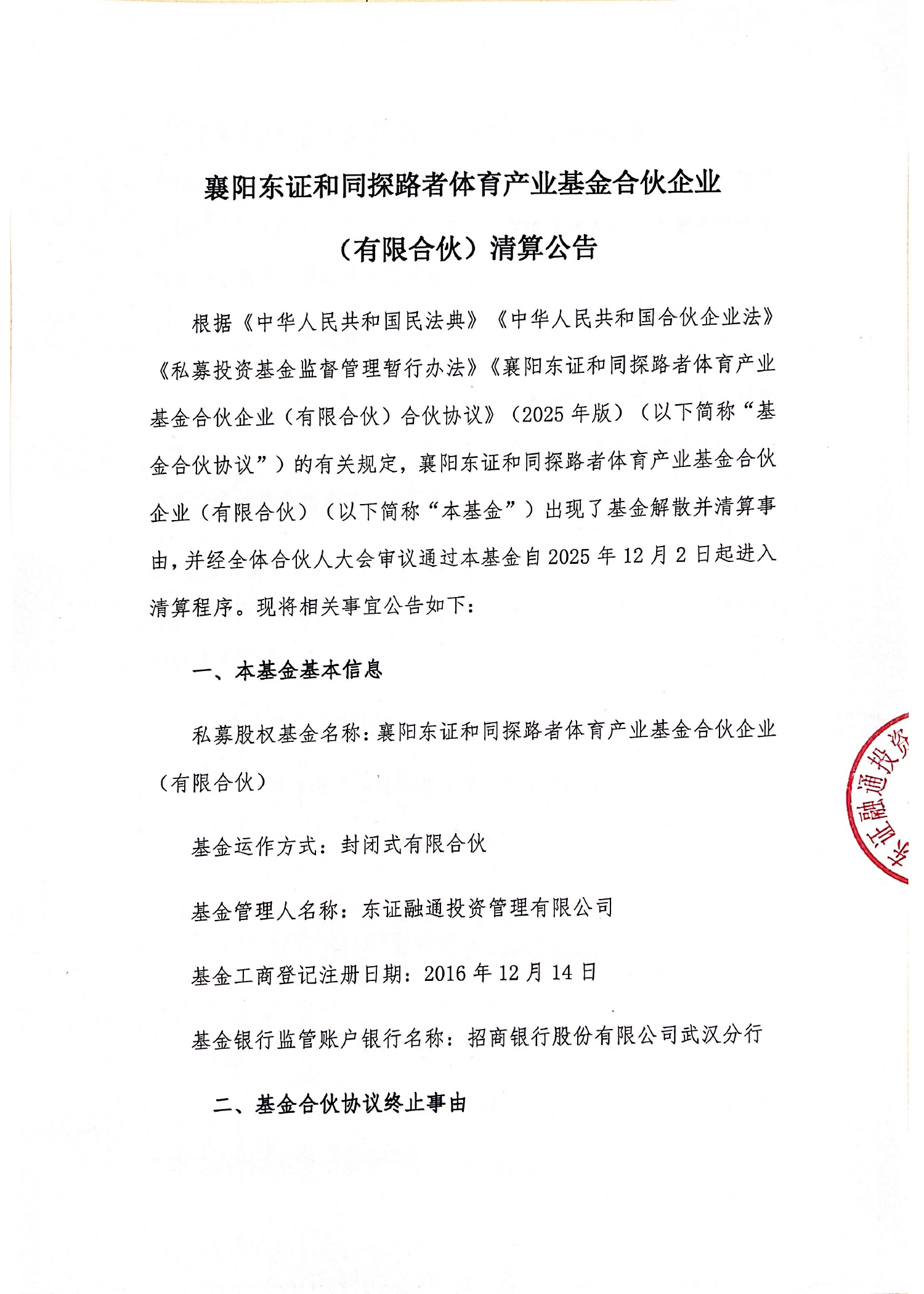 襄阳东证和同探路者体育产业基金合伙企业(有限合伙)清算公告